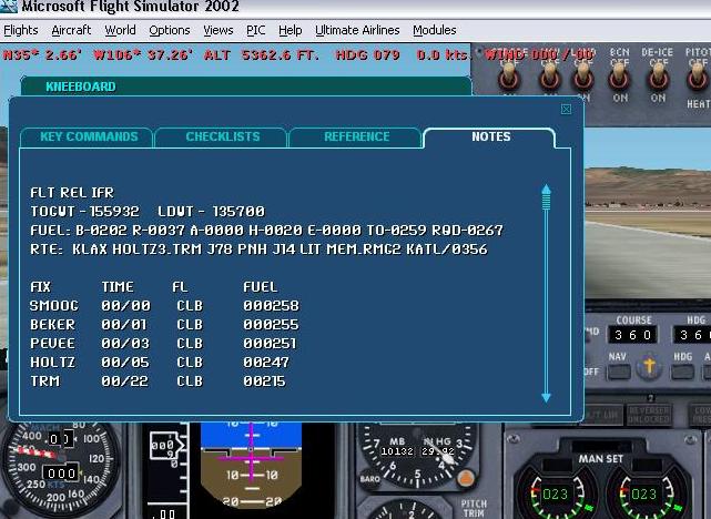 The Navlog can be exported in Miniplan format to your FS2002 kneeboard Notes file for the specified aircraft.